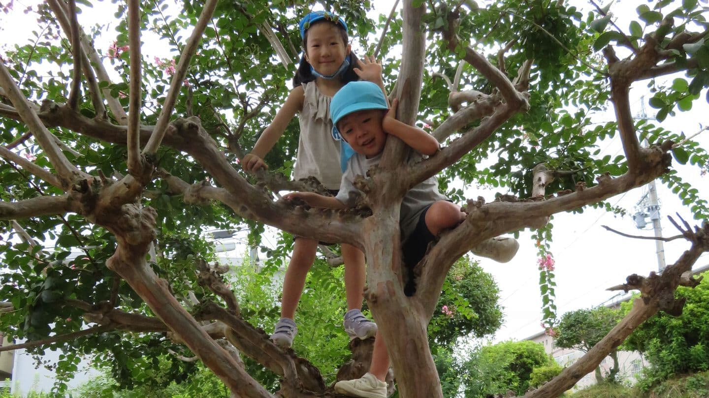 繊細なお子さんは園庭でホッとする子もいます。自然に親しめるよう、安全に配慮して木登りもOK!