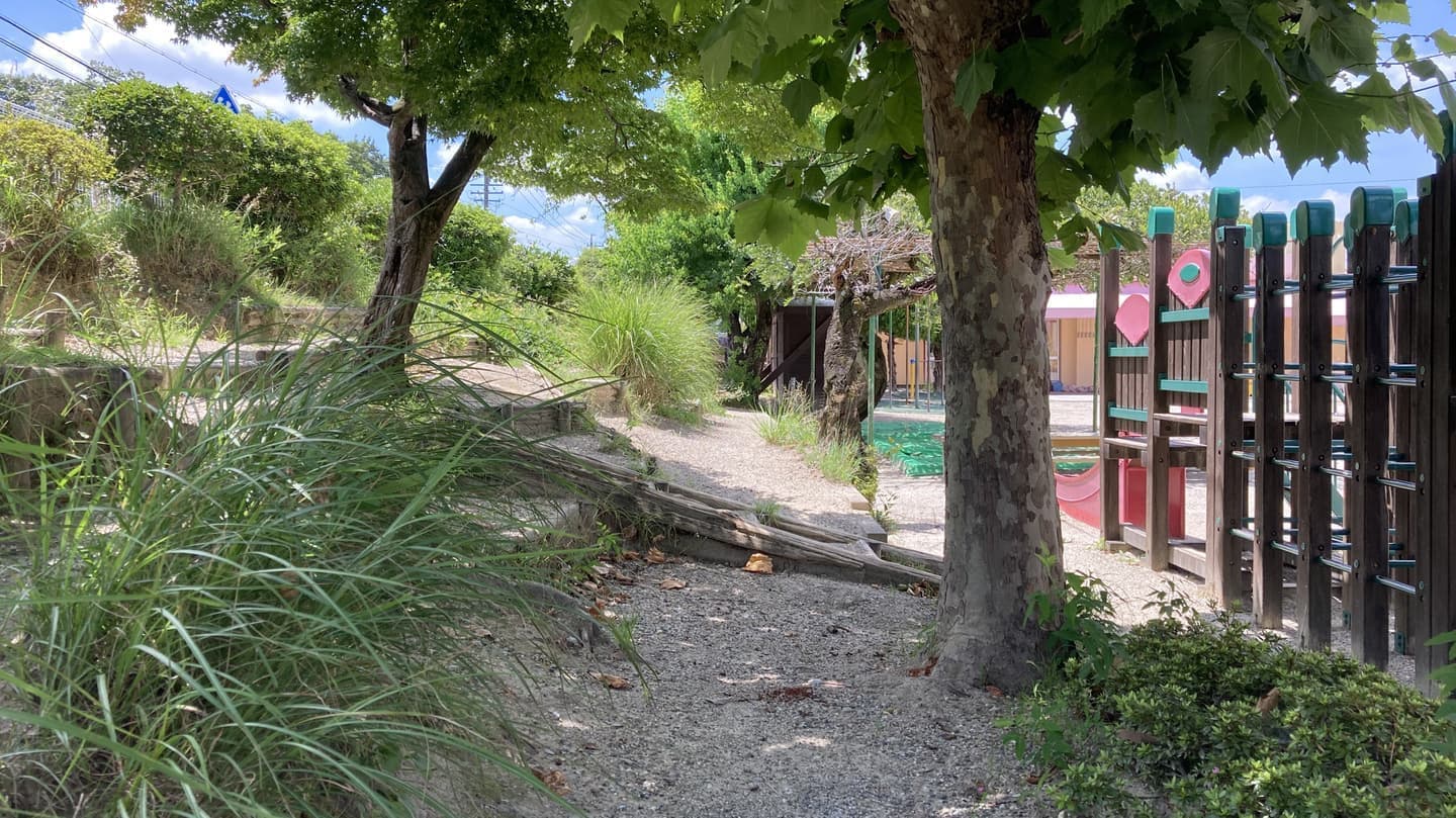 子どもたちのお気に入りの場所がいくつもある園庭です。